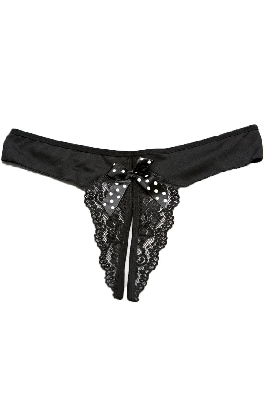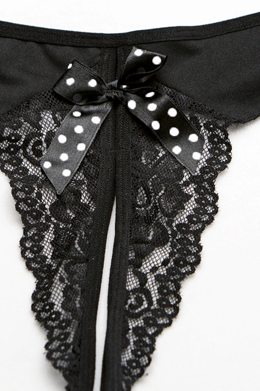 - Includes: Crotchless Panty with Black Polka Dot Bow